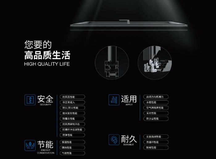對追求品質(zhì)的現(xiàn)代人來說,門窗直接關(guān)系到家居品質(zhì)與生活質(zhì)量,更是檢驗(yàn)健康生活方式的試金石,因此,打造屬于家人的理想空間,營造一個(gè)安逸舒心的溫馨港灣,從一扇高性能門窗開始…… 你要的高品質(zhì)生活:安全、適用、耐久、節(jié)能等都是我們家庭門窗首選要關(guān)注的方面。